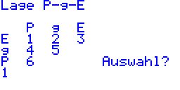 Beschreibung (oder zur Beispielaufgabe) ACHTUNG - einige Lagebeziehungsunterprogramme aus den Programmsammlungen Mathe200x sind fehlerhaft! Dies trifft wohl auch auf Mathe2000 zu! Bitte prüfen Sie mit den Geraden (2|1|0)+s(1|-1|0) und (5|9|0)+t(2|9|0) -> Schnittpunkt müsste (3|0|0) sein! Fehlerfrei dürfte MATHE2005 sein. Mit dem Programm LAGEPGE lassen sich Lagebeziehungen im Koordinatensystem anzeigen. Als erstes muss ausgewählt werden, zwischen welchen Elementen der Vektorrechnung die Lagebeziehung ermittelt werden soll. Folgende Optionen sind möglich: