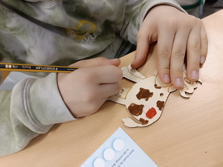 Am letzten Schultag vor den Winterferien wurden die Schülerinnen und Schüler der Klassen 2 und 3 zu Milchdetektiven. Gemeinsam lösten die Kinder verschiedene Aufgaben, um an den Inhalt der verlockenden Schatztruhe zu gelangen. Dabei lernten sie die Schritte der Joghurtherstellung kennen und durften sogar selbstgemachte Butter auf frischem Brot verkosten. Zum Schluss bemalte sich jeder nach Herzenslust eine Holzkuh und nahm diese als Erinnerung mit nach Hause.