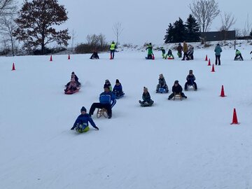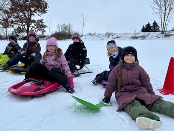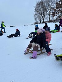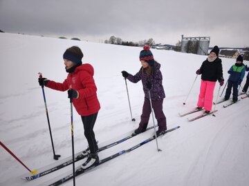 Die Kinder entschieden sich entweder für Skilanglauf oder für´s Schlittenfahren. Nach einem gemeinsamen Frühstück in der Schule starteten Schüler und Lehrer gemeinsam in Richtung Sportanlage Dorfchemnitz. Bei besten Loipenbedingungen starteten rund 40 Kinder auf Langlaufski ihre Runde. An dieser Stelle vielen Dank an den Dorfchemnitzer Sportverein Abteilung Skilanglauf! Herr Bach hat unserer Schule eine hervorragende Loipe und extra eine kleine Anfängerrunde vorbereitet. So konnten die Langlauf-Profis in Richtung Skihütte Dorfchemnitz starten, während Kinder, die zum ersten Mal auf Skiern standen, sich weiter im Tal ausprobieren konnten. Gegenüber auf dem Rodelhang war aber auch viel los. Immer wieder sausten die Kinder allein oder zu zweit auf ihren Schlitten den Hang hinunter. Es wurde Schneeballschlacht gemacht, Schneemänner gebaut und auch der ein oder andere Lehrer wurde auf dem Hang rodelnd gesichtet.