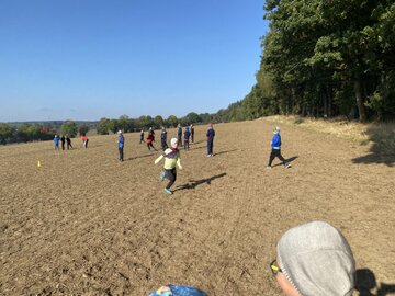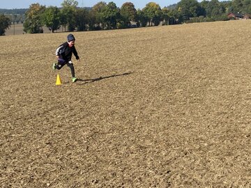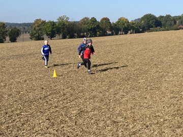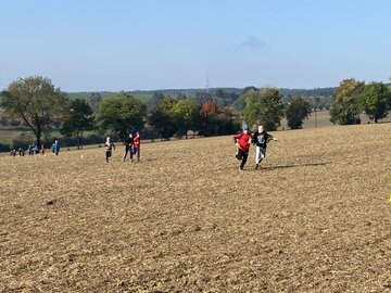 Der Lauf führte an der Alten Brünloser Straße über Feld, Wald und auf Feldwegen zum Teil über Stock und Stein. Die Kinder mussten genau aufpassen, um ihre Strecke zu erkennen, denn die Streckenführung wurde nur von kleinen Hütchen markiert. Für die Klassen 1 und 2 war die Runde