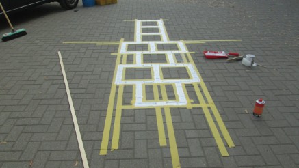 An einem sonnigen Herbstsamstag zauberte Herr Bellmann in 3 ½ Stunden ein erstes Hüpfekästchen auf den Schulhof.