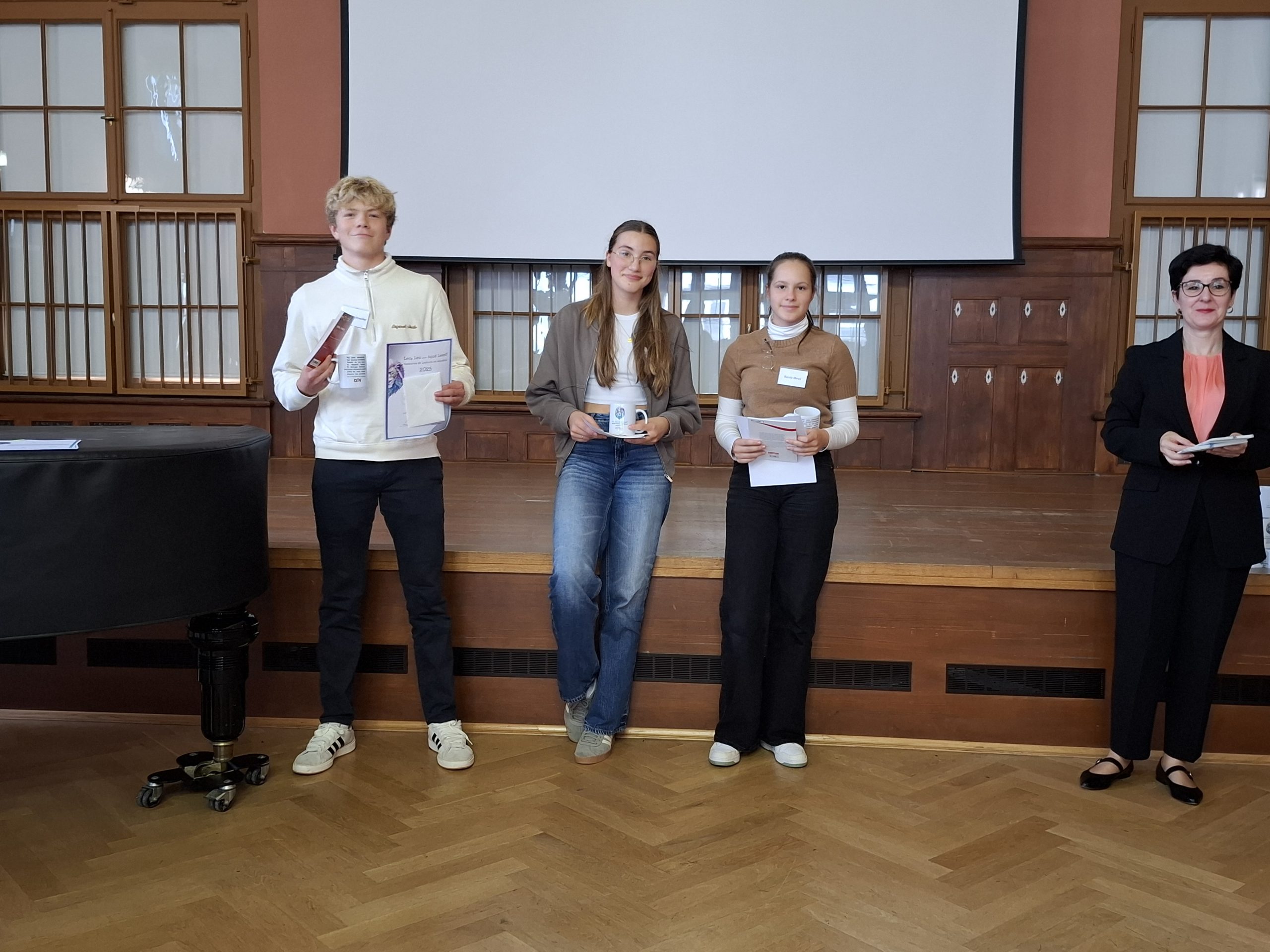 Wir bedanken uns ganz herzlich bei den Schülern der Klasse 10/2 für ihren musikalischen Beitrag bei der Eröffnung sowie bei Elias, Beatrix, Isabella, Luca und Albert für ihre Arbeit in der Jury. Das habt ihr prima gemacht! Vielen Dank auch an alle Kolleginnen und Kollegen, die uns so tatkräftig bei der Jury und im Rahmenprogramm unterstützt haben.