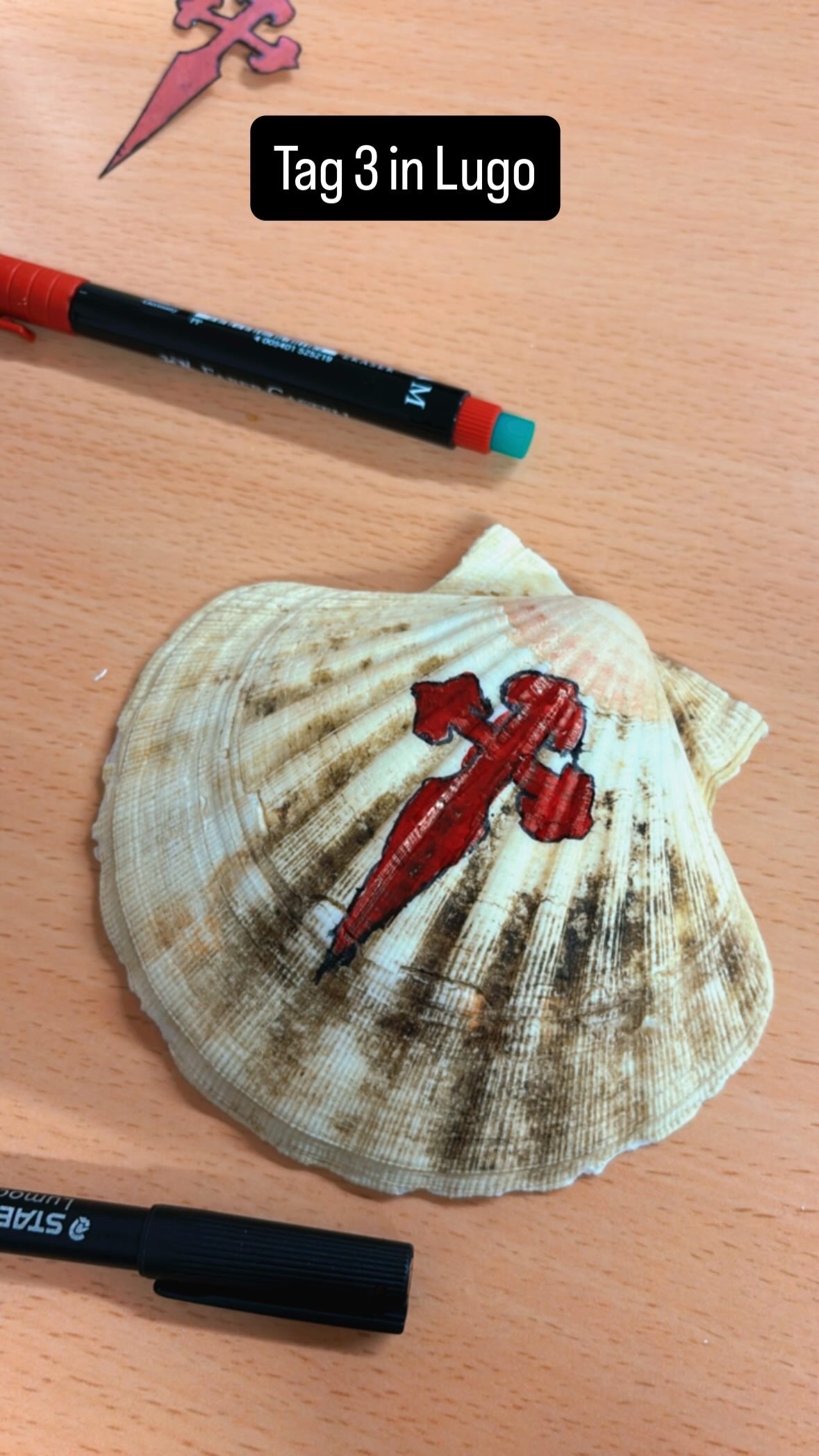 Heute haben wir viel über die römische Geschichte von Lugo gelernt. Um 8:45 Uhr trafen wir uns mit den spanischen Lehrern und Schülern in der Bibliothek der Schule. Dort erhielten wir Muscheln, Schnüre und Schablonen, um Muscheln für den Jakobsweg zu basteln, wie sie die Pilger tragen.