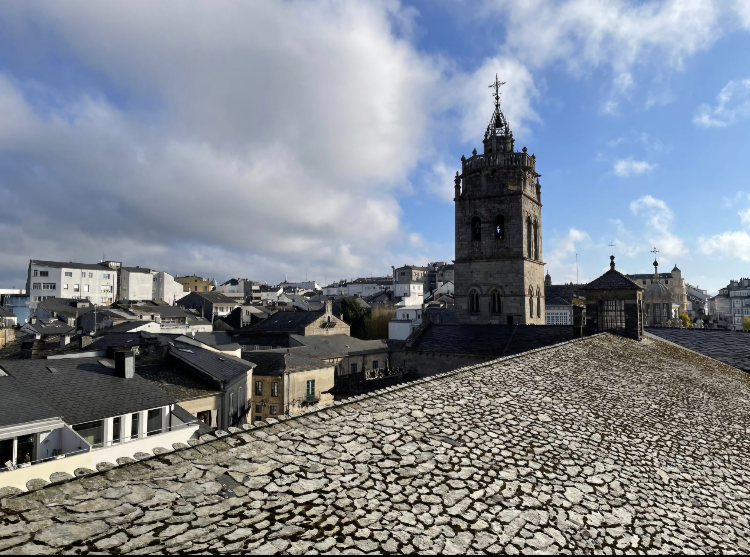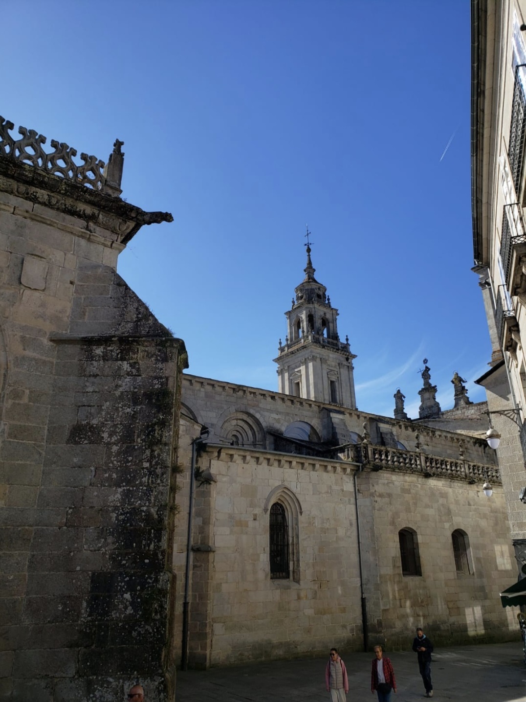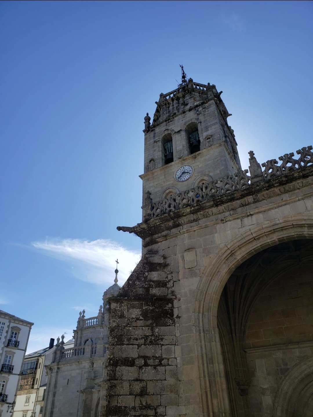 Danach sind wir zusammen zur Kathedrale von Lugo gegangen. Wir wurden durch das imposante Gebäude geführt und haben neues Wissen über das Bauwerk erworben. Dann sind wir eine unfassbar schmale Wendeltreppe hochgestapft und konnten die unglaubliche Aussicht genießen. Besonders spannend war das Dach, welches aus einzelnen Steinplatten anstatt aus Ziegeln bestand. Noch schnell wieder ein Gruppenfoto gemacht und ab nach unten.