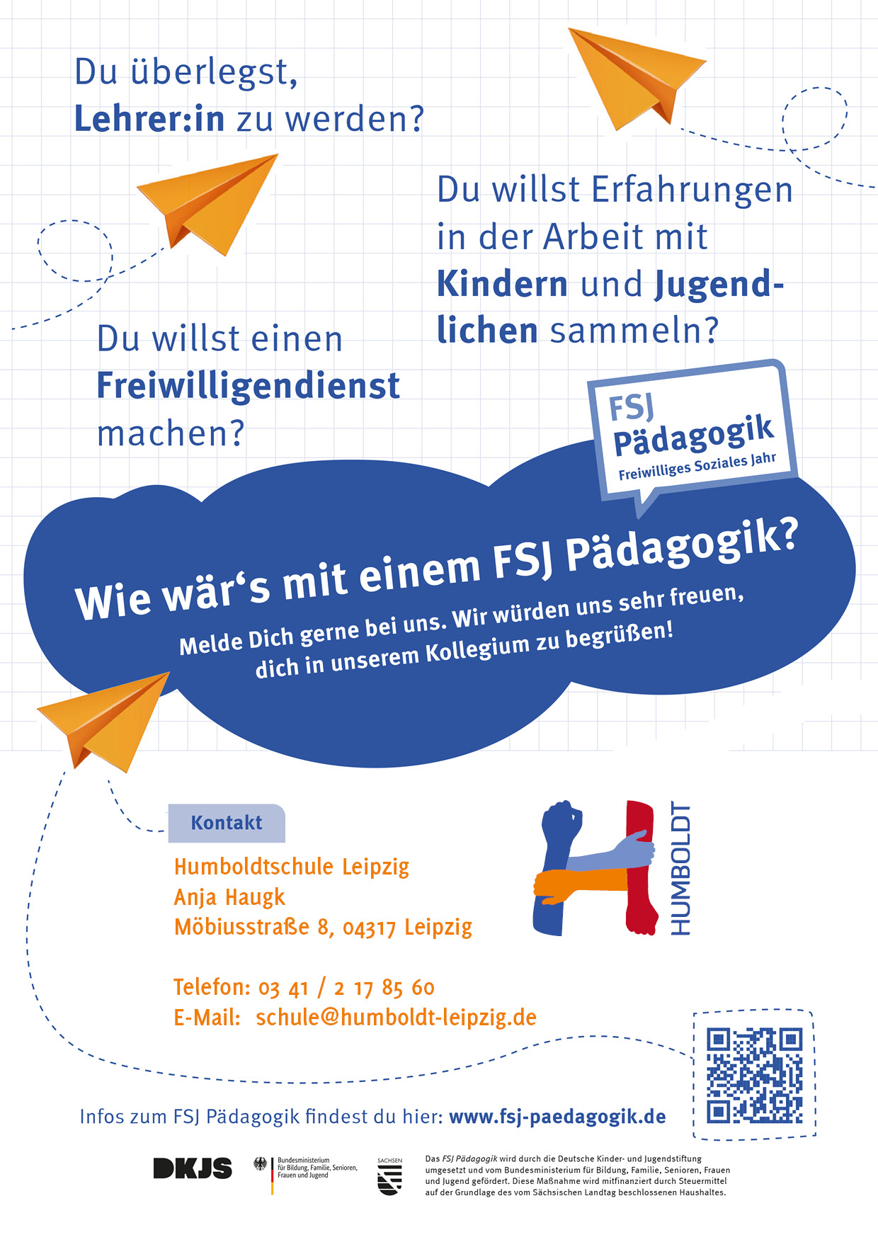 Unsere Schule bietet die Möglichkeit, ein Freiwilliges Soziales Jahr (FSJ) im Bereich Pädagogik zu absolvieren. Das FSJ Pädagogik ist ein Bildungs- und Berufsorientierungsjahr für junge Menschen zwischen 18 und 26 Jahren, die Interesse daran haben, den Schulalltag aktiv mitzuerleben und erste Erfahrungen im pädagogischen Bereich zu sammeln.