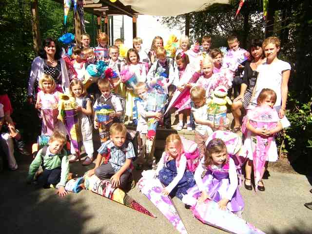 Was macht den Schulanfang perfekt ? In Weißig haben wir's entdeckt : Man konnte samstags früh um zehn ganz viele Jungs und Mädels seh'n, um sich in schönstem Sonnenschein vor Weißigs Gasthof aufzureih'n. Den Ranzen auf, die Augen groß, man denkt : "Was machen die da bloß ?" Ah, nun sind sie abgebogen und in den Festsaal eingezogen. Dort ward - sie wurden schon erwartet - für sie das Festprogramm gestartet. Der Chor stimmt die Begrüßung an, und auf die Bühne tritt sodann die Hexe, die nicht lernen will, und auch ihr Kater sitzt nicht still, wenn es an das Lernen geht, kurz - es sich um die Schule dreht. Die "Großen" aus der Klasse 4 sind aber zur Bekehrung hier : Nach vielen Versen, Liedern, Tänzen will's Hexlein nie mehr Schule schwänzen, Gebannt lauscht die Eleven-Schar und freut sich auf ihr erstes Jahr. "Hier lernt man auch Theater spielen" , ist ein Eindruck unter vielen. Was nun folgt ist viel Applaus und schon wieder zieh'n sie aus, um der Schule zuzustreben, denn dort soll's Zuckertüten geben. Mit Fanfaren eskortiert, wird entschlossen losmarschiert. Als sich dann der Eltern Tross auf der Schule Hof ergoss, schenkt der Schul-Förder-Verein, wem wollte, noch ein Gläschen ein. Nun Achtung ! Und mit einem Male ist man bereit für das Finale. Aus ist die Kennenlernen- Stunde, jetzt folgt die Zuckertüten- Runde, ´s wird jedes Kind ganz ungeniert zehntausendmal fotografiert. Wir scheiden vom Gefühl durchdrungen, der Schulbeginn war voll gelungen ! | ||||||||||||||||||||||||||||||||||||||||||||||||||||||||||||||||||||||||||||||||||||||||||||||||||||