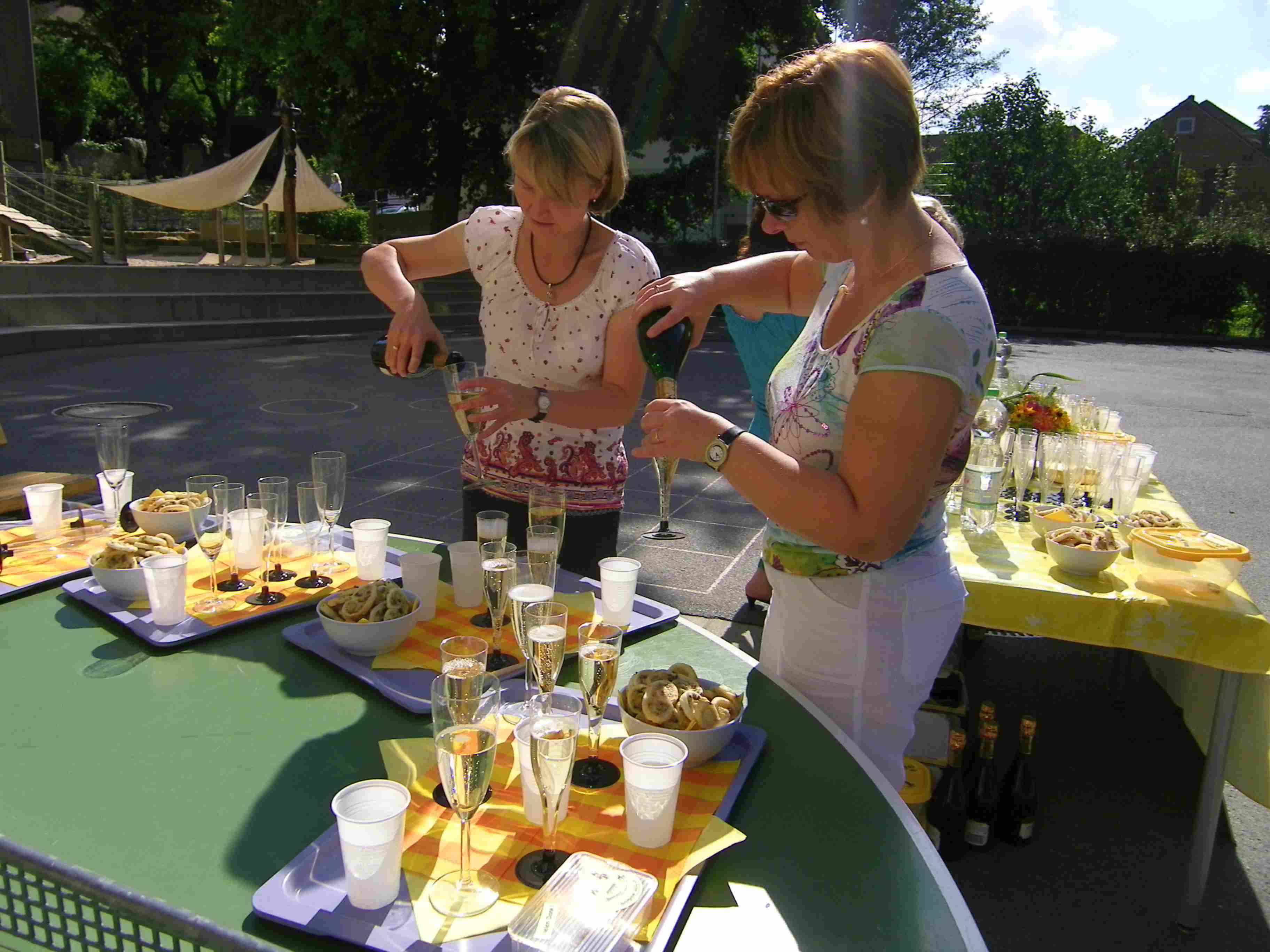 Auch in diesem Jahr gab es für die Familien der Schulanfänger Selters, Saft, Sekt und kleine Knabbereien am Stand des Fördervereins