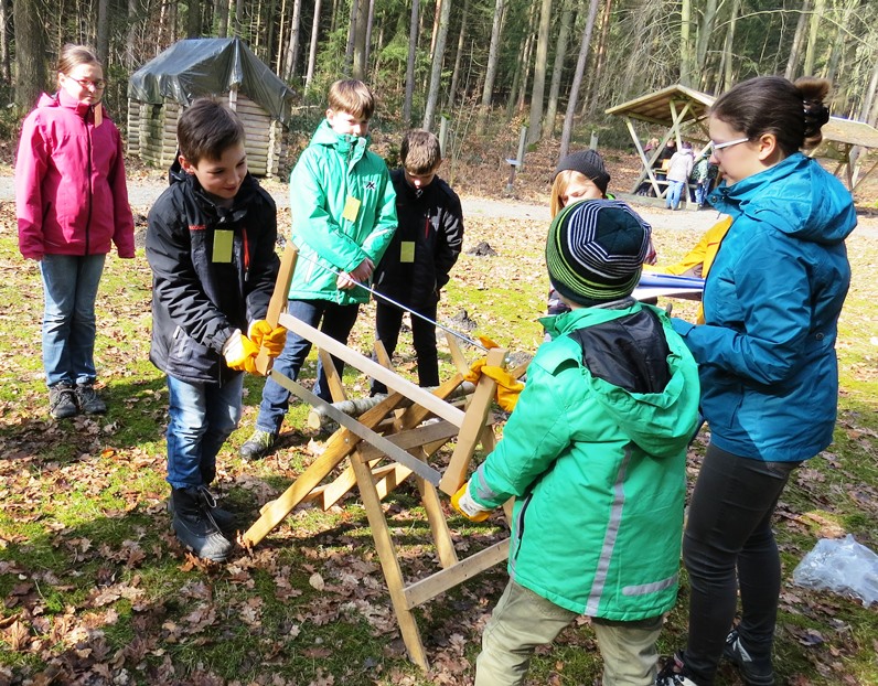 zu erfühlen. Die andere Gruppe durfte zur Sägestation. Hier