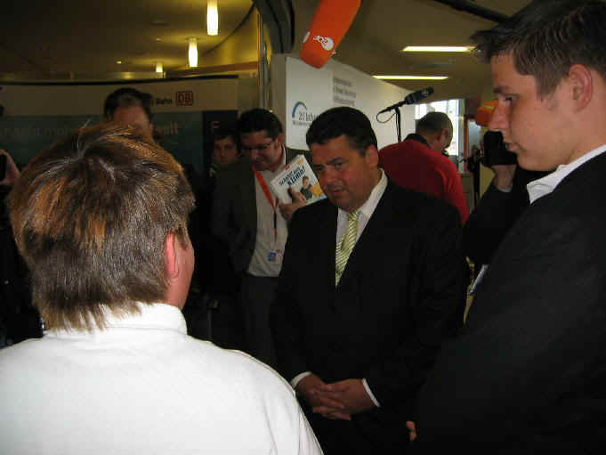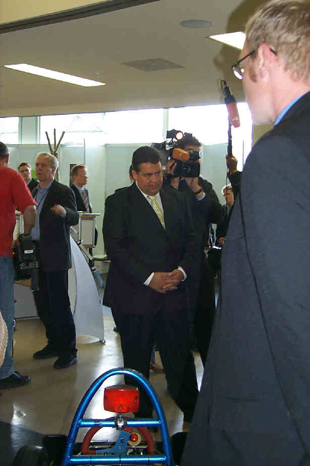 Am 6. Juni 2006 fand ein Fachsymposium "20 Jahre Bundesumweltministerium - Bilanz und Perspektiven" statt. Tagungsort war das berliner congress-center am Alexanderplatz. Unsere AG Formel-E-Radebeul war als diesjähriger Sieger im Bundeswettbewerb Jugend mit unendlicher Energie eingeladen. Wir präsentierten unsere Solartankstelle und ein E-Kart, sowie vielfältige Informationen über die AG und unsere Schule. An der Veranstaltung nahmen viele prominente Politiker teil. So kam Bundeskanzlerin Frau Merkel zur Eröffnung und hielt eine Festrede. Bundesumweltminister Siegmar Gabriel besuchte unseren Stand und interessierte sich sehr für unsere AG. Wir beantworteten ihm einige Fragen zur Technik, den Fahrleistungen und Wettkämpfen. Am Nachmittag besserte sich das Wetter und wir konnten unser E-Kart startklar machen. Mehrere Staatsekretäre und Mitglieder des Bundestages drehten Proberunden. Es war für alle Teilnehmer unserer Schule (nicht nur wegen einiger Werbegeschenke) ein sehr interessanter, kurzweiliger und aufschlussreicher Tag.