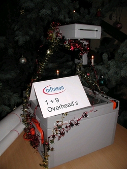 In diesem Rahmen gab es auch ein vorfristiges Weihnachtsgeschenk unserer Patenfirma Infineon Dresden. Wir erhielten einen Overhead-Projektor, symbolisch für noch 9 weitere, überreicht.