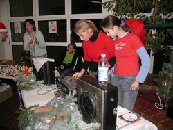 An den Bastelständen wurden wieder Kleinigkeiten für Mutti, Vati, Oma oder Opa gebastelt. So entstanden Kerzen aus Honigwaben, Weihnachtsbaumschmuck oder weihnachtliche Dekoration wurde aus verschiedenen Naturmaterialien gebastelt. Wer eine besondere Weihnachtskarte verschenken wollte, versuchte sich an der Fadengrafik. An weiteren Bastelständen konnten noch viele andere Dinge gebastelt werden.>