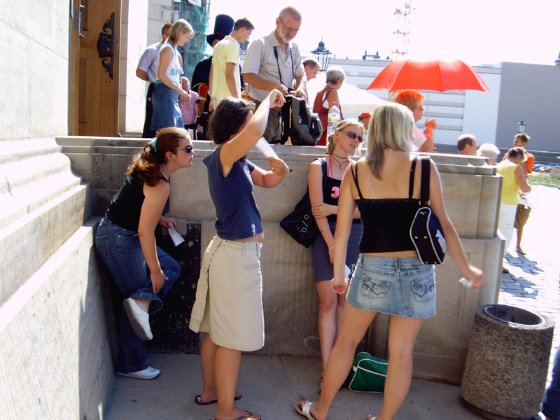 Achtung - Archiv: Dies ist die alte Webseite der Mittelschule WeixdorfSchuljahresende- die Gedanken sind schon in den Ferien...und jetzt noch eine anstrengende Geschichtsstunde absolvieren und sich mit vielen Daten beschäftigen...? Dem war nicht so, denn die Schüler der Klassen 9b/c schauten sich am 20.07.06 zuerst im Informationszentrum im Kulturpalast den interessanten Film "Faszination Frauenkirche" an. Danach ging es an und in die historische Stätte selbst. Schon am Eingang und später auch im Inneren der Kirche sahen sich die Schüler von einer Vielzahl Menschen umgeben, die aus aller Welt gekommen waren, um selbst zu sehen und zu staunen, denn der originale Wiederaufbau der Frauenkirche fasziniert viele. Die Schüler fanden u.a. folgende Gründe dafür heraus: