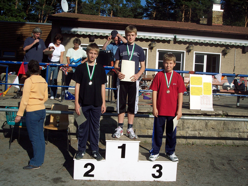 Zudem stellte Max Kramer mit 366 Punkten ein noch nie erreichtes Ergebnis im Dreikampf auf (Sprint, Kugelstoßen und Weitsprung). Und hier die Sieger im Dreikampf der entsprechenden Klassen: