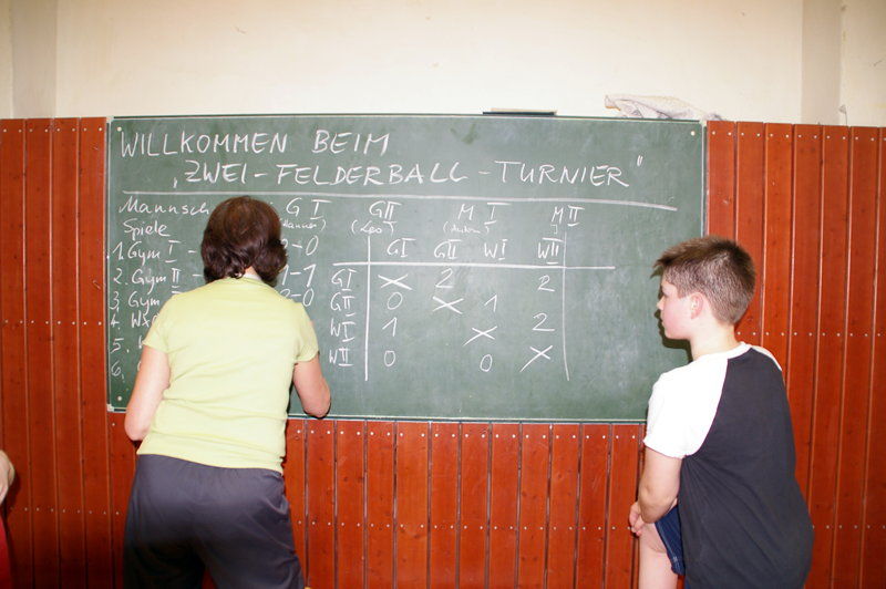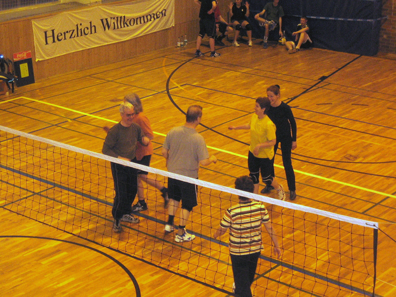 Den Abschluß bildete das Volleyballturnier. Sieben Mannschaften stritten um Punkte und gute Platzierungen. Den Pokal holten sich mit Kamfpfgeist, schönem Zuspiel und scharfen Angriffsschlägen die Schüler vom Gymnasium Klotzsche.