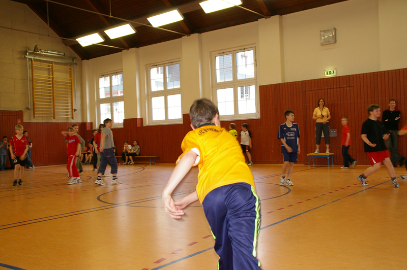 Tolle Stimmung war wieder am Donnerstag beim Zweifelderballturnier der 5. Klassen, wo jeweils 2 Mannschaften vom Gymnasium und von unserer Schule um den Sieg kämpften. Den 1. Platz belegte diesmal die 1. Mannschaft vom Gymnasium.