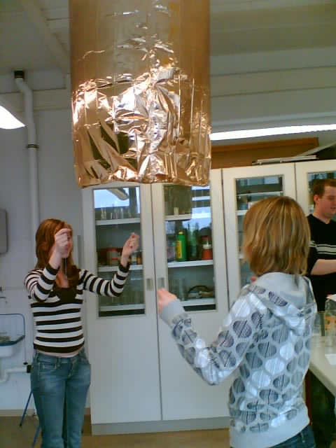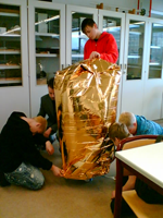 Dort wurden aus einfachen Materialien (Rettungsdecken, Strohhalmen; Büroklammern und Bindfäden) Heißluftballons angefertigt. Die