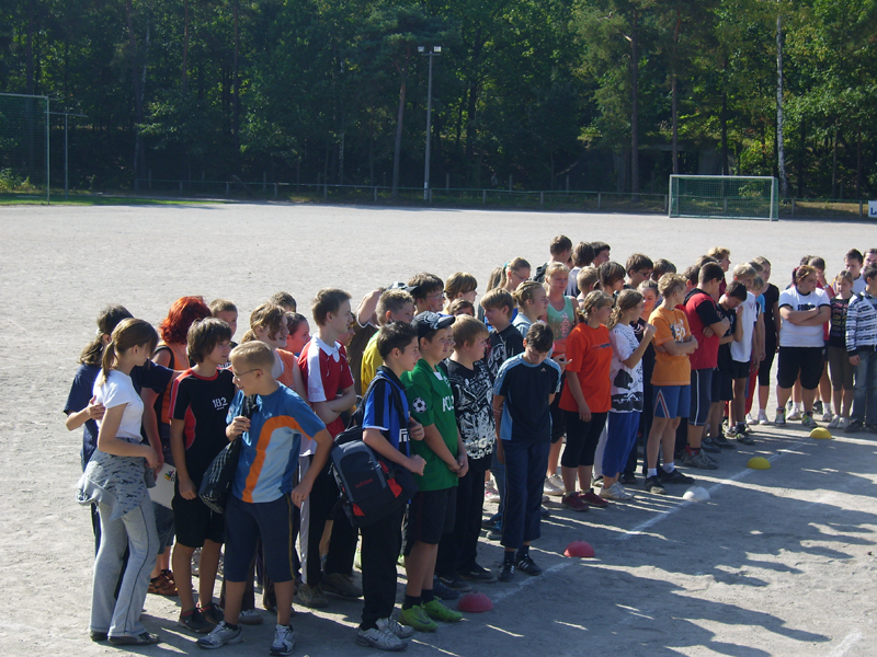 Mittwoch, den 23.09.2009 um 8 Uhr begann das Sportfest der Mittelschule Weixdorf für die Klassen 5 - 7, um 12 Uhr für die Klassen 8 - 10 auf dem Forstsportplatz in Weixdorf. Schon dieser Umstand, dass die Schüler und Lehrer auf vertrautem Gelände, in gewohnter Umgebung einen sportlichen Tag verbringen sollten schien alle zu beflügeln. Bei herrlichem Wetter und Sonnenschein wetteiferten die Schüler um Höchstleistungen und so war es auch nicht verwunderlich, dass persönliche Rekorde aufgestellt wurden.