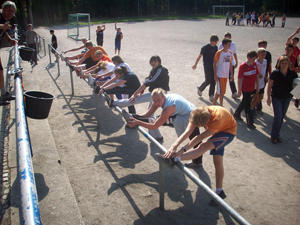 Das faire Kämpfen um die Siege in den Einzeldisziplinen Weitsprung, Kugelstoßen bzw. Medizinballweitwurf und Sprint, die zum Mehrkampf gewertet wurden, sowie den Wettkämpfen der Klassenstufen im Staffellauf, Fußball und Zwei-Felder-Ball machte den Schülern augenscheinlich sehr viel Spaß. Es waren immer wieder laute Anfeuerungsrufe und Jubelschreie zu hören und sogar hin und wieder Transparente zu sehen.