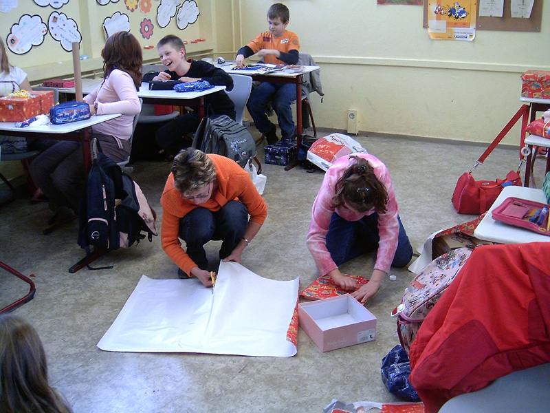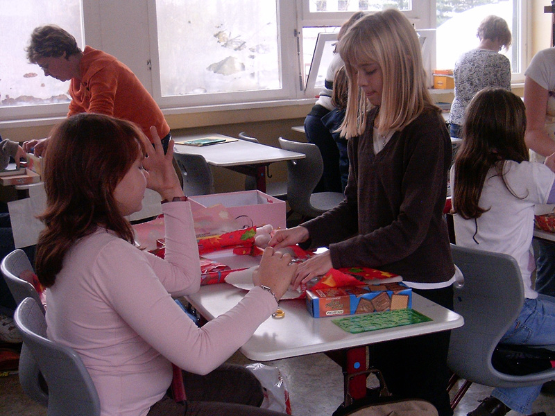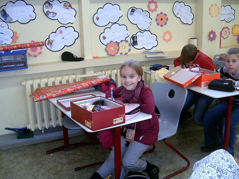 Unterstützt von den Klassenlehrern und ganz engagierten Eltern wurden liebevolle Päckchen mit Bekleidung, Süßigkeiten, Malzeug, Spielsachen u.a. gefüllt und mit einer selbst gestalteten Weihnachtskarte versehen. Die Freude darüber, anderen eine Freude zu bereiten, war ansteckend.