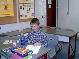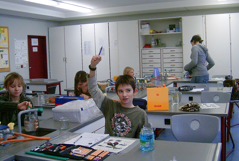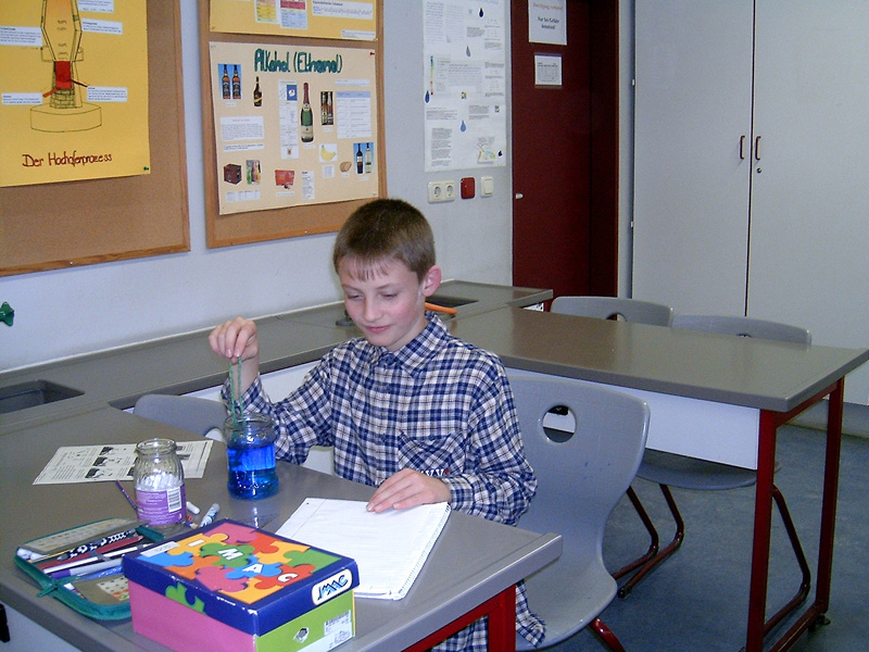 Ziel des Kurses ist es, die Schüler mit experimentellen Methoden zur Erkenntisgewinnung vertraut zu machen. Sie lernen Ergebnisse zu protokollieren und zu präsentieren. Unsere Themen beziehen sich vorwiegend auf Wasser, Farbe und Licht Die Schüler dokumentieren ihren persönlichen Wissenszuwachs in einem Lerntagebuch. Besonders interessante Unterrichtseinheiten sind zum Beispiel die Funktionsweise eines Unterwasservulkans (siehe Fotos), die Frage wie ensteht eine Tropfsteinhöhle oder wie kommt die Farbe an den Himmel. Wichtig ist es für uns, experimentelle Ergebnisse mit natürlichen Erscheinungen in Verbindung zu bringen und zu erklären. |