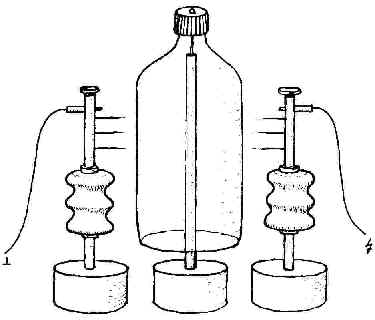 für Hochspannung, Influenzmaschine) verbunden. Die Flasche beginnt sich